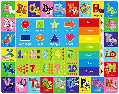 KIDS EDUCATIONAL RUG: Our baby kids play mat rug design with alphabet, ABC is represented by specific animal objects, numbers which the corresponding number of fruits, shapes in different colors, rainbow pen which the corresponding color name, bright colors and vivid pattern. This Carpet Playmat is ideal for promote your child’s early education.