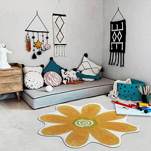 Luxixiry Yellow Flower Round Rug, Cute Fluffy Soft Floor Mat for Children’s room Living room Bedroom (Yellow Flower,31.5″ Round)